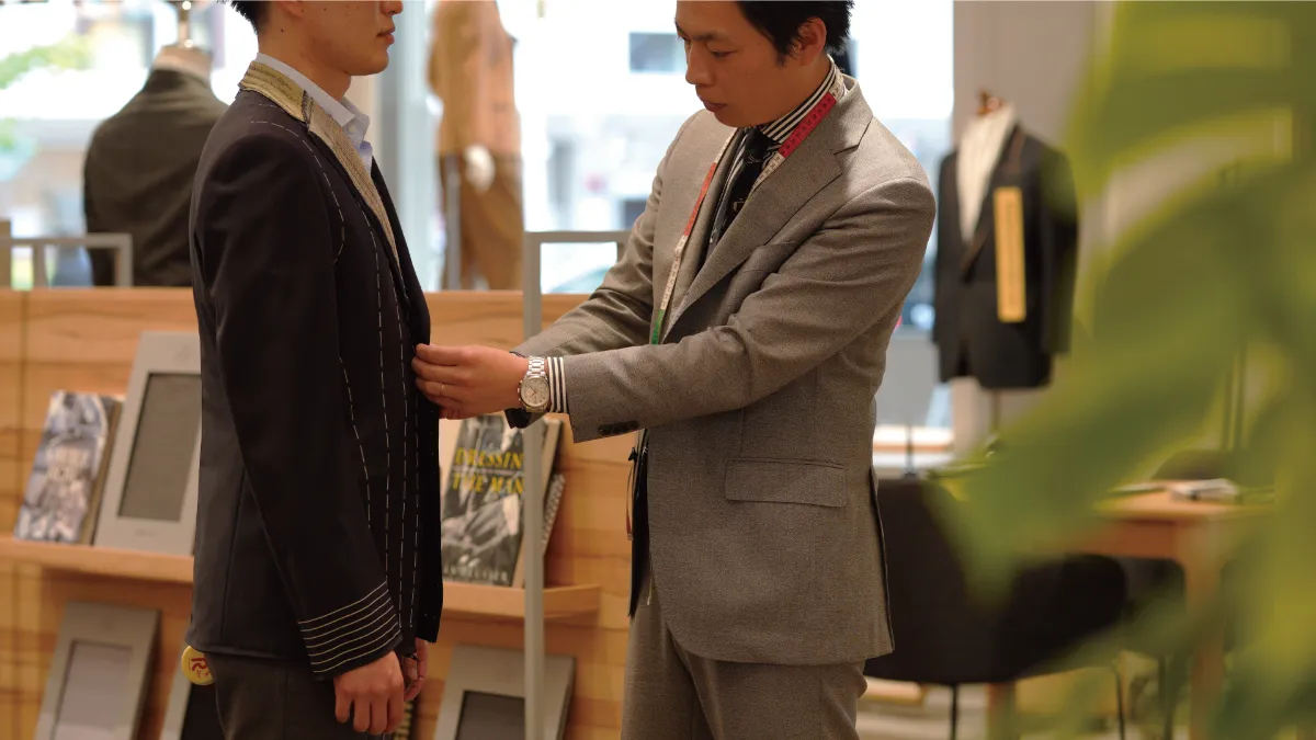 小林:未経験の方には、少しづつ商品のことを覚えていただきながら、オーダー商品も取り扱っているので技術を身につけてもらいつつ、お客様と一対一でしっかりと接客できるところまで成長してもらいます。それぞれのやり方で良さを生かしながら、お客様とコミュニケーションをとりお客様に満足いただけるスーツをお届けできるスタッフになったもらいたいです。