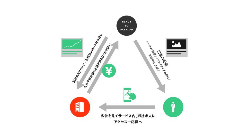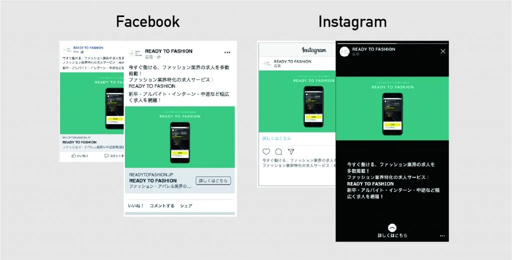 READY TO FASHIONのユーザー情報を活用して、募集要項の求める人材にターゲティングした広告を、SNS上で配信します。