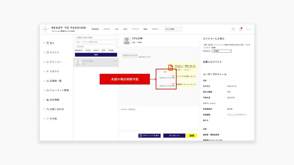 削除可能なメッセージは未読のメッセージのみです。