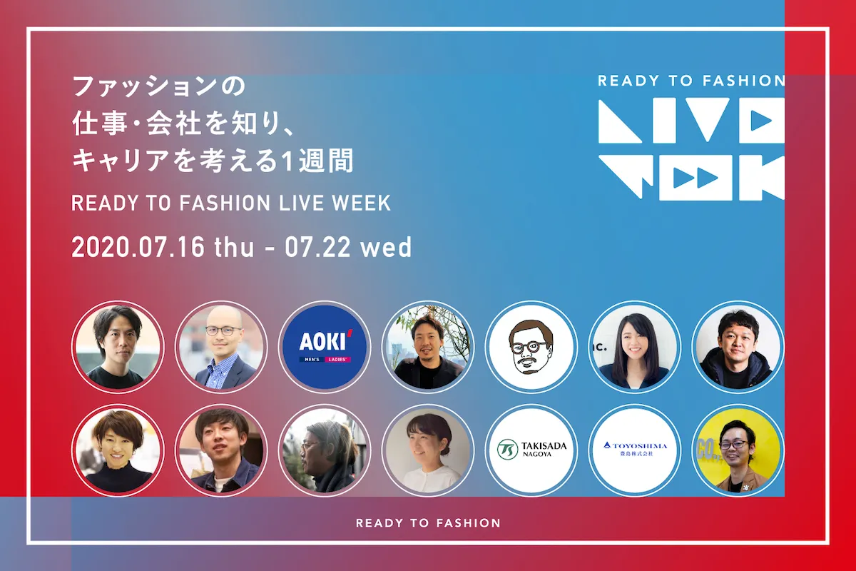 株式会社READY TO FASHIONは2020年7月16日(木)〜22日(水)の1週間、ファッション・アパレル業界のキャリア・市場の動向などを知るライブ配信イベント「READY TO FASHION LIVE WEEK」を開催します。