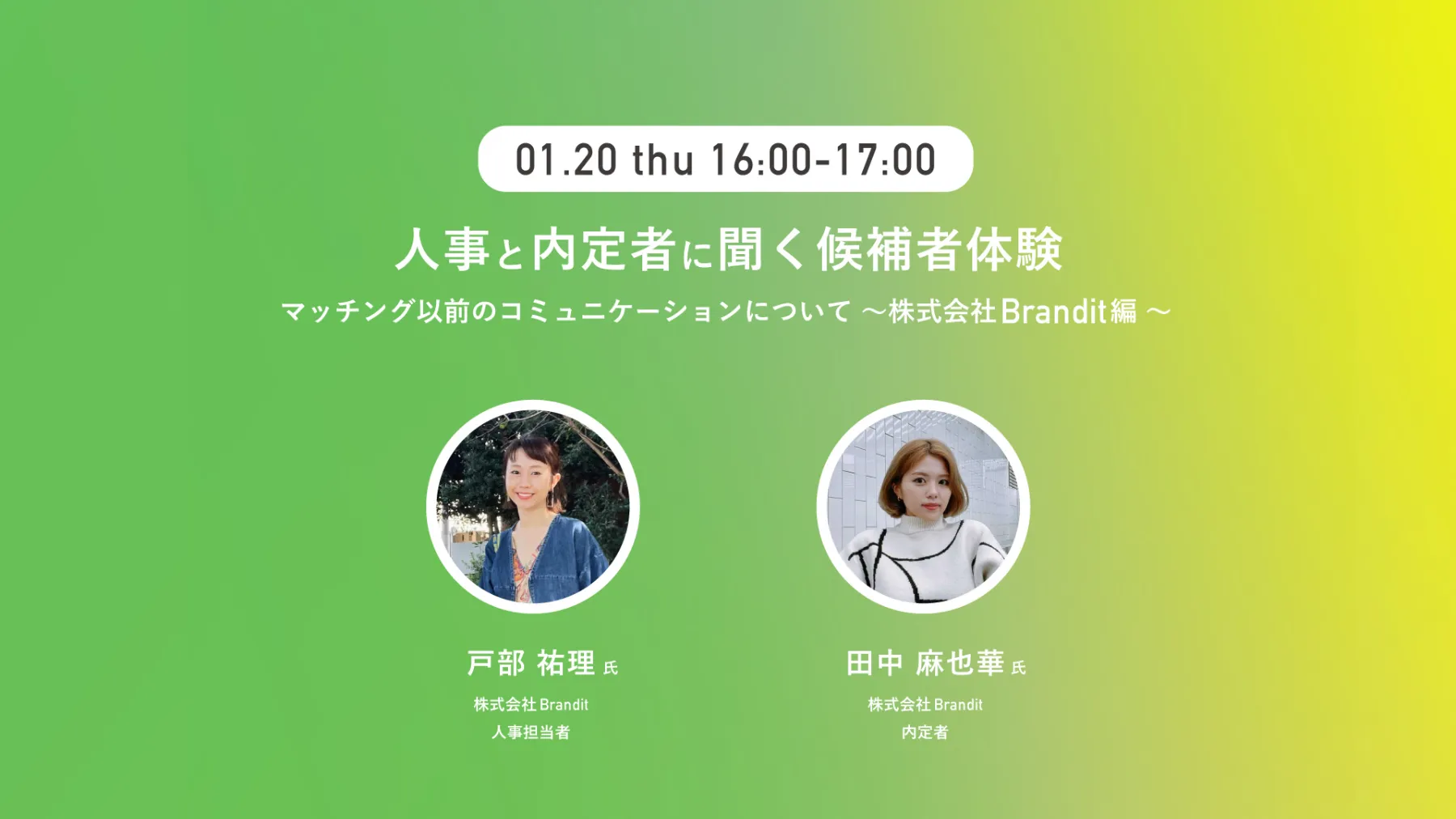 株式会社READY TO FASHIONは1月20日(木)、株式会社Branditの人事担当者と内定者の方をお招きしたオンライントークイベント「人事と内定者に聞く候補者体験ーマッチングまでのコミュニケーションについて」を開催します。