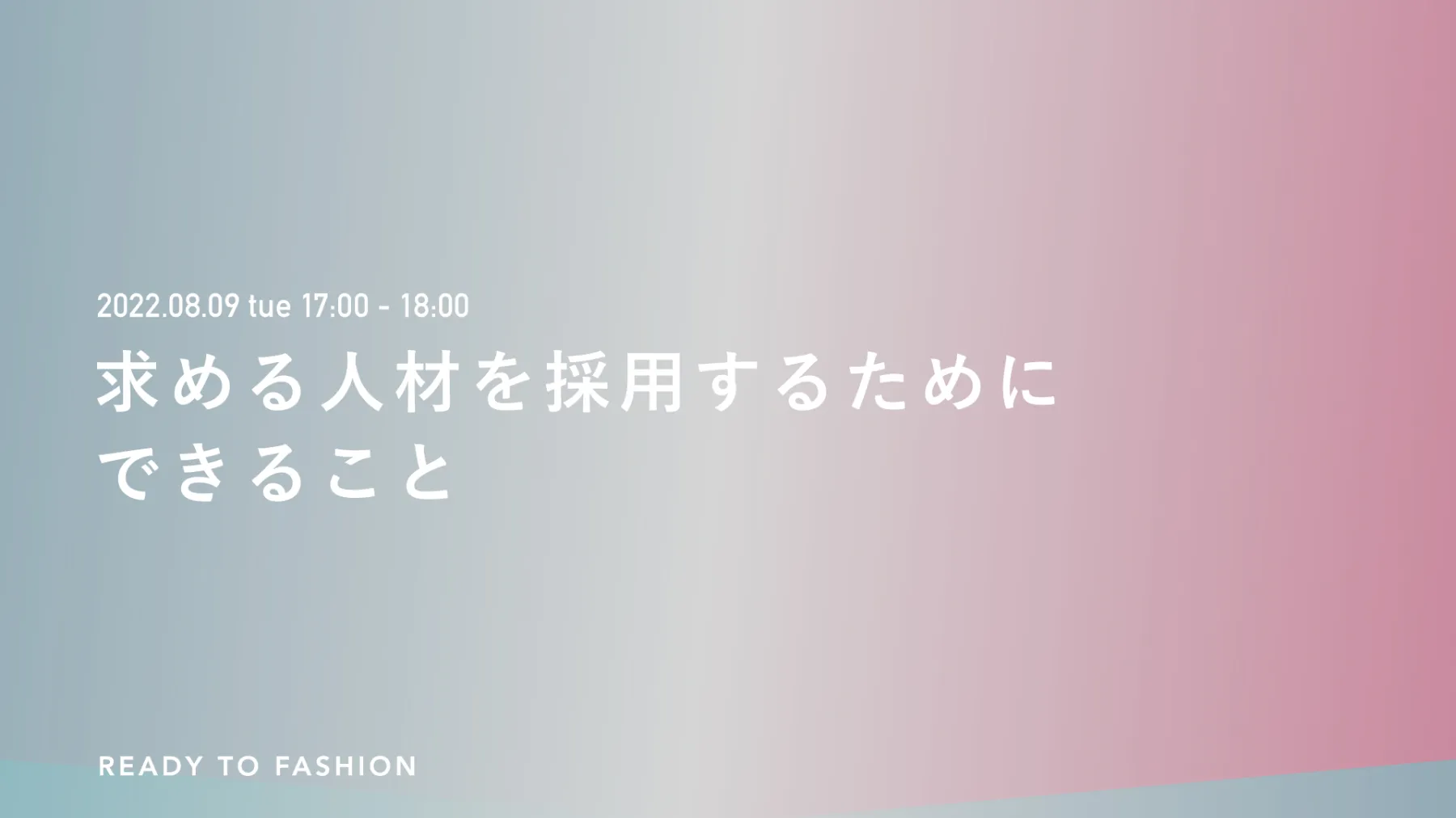株式会社READY TO FASHIONは8月9日(火)、「求める人材を採用するためにできること」に関してイベントを開催いたします。